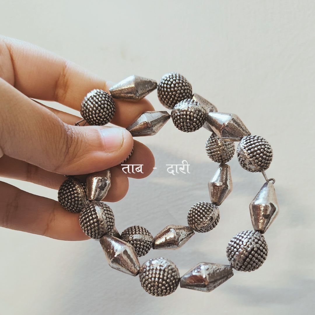 Indulge in everyday elegance with our Badli Kangan Set, featuring two bangles crafted from silver oxidized beads, adding a touch of versatile sophistication to your daily ensemble. Care Instructions: