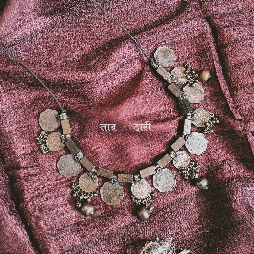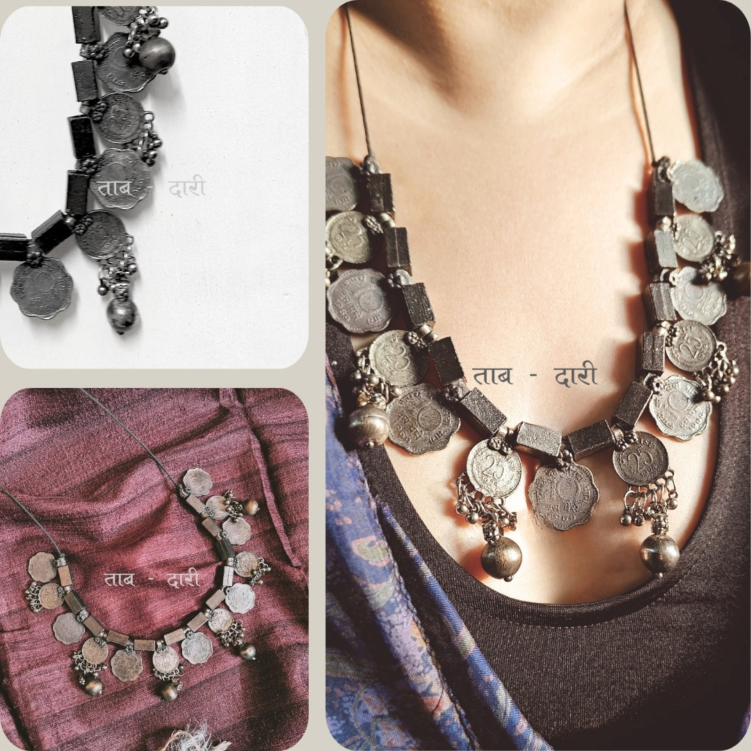 This Sikka Haar necklace features a beautiful handcrafted design in oxidized silver complemented by cultured round beads, perfect for your individual,bold statement style. Care Instructions: